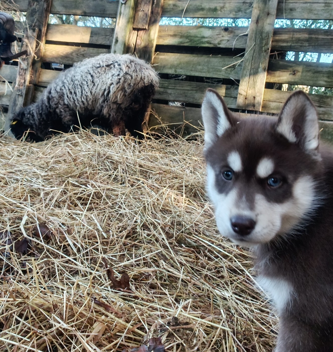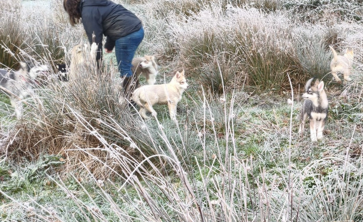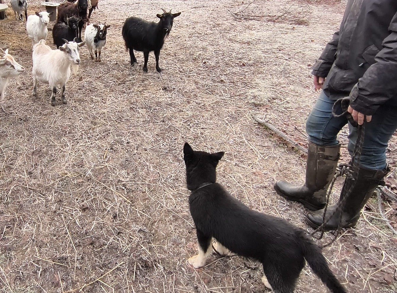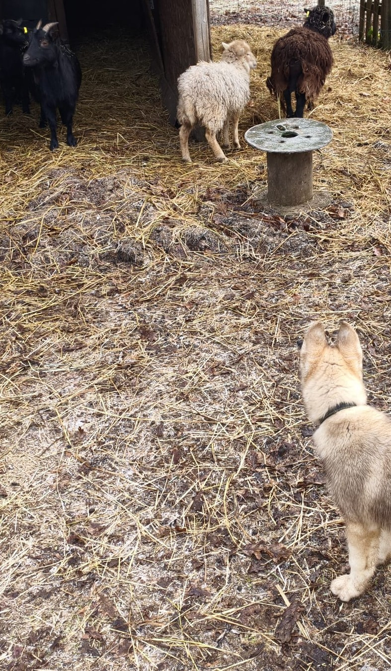 Les chiots avec les chèvres et moutons Akaïa Akenaï Ashaï avec les loulous Aslow et les moutons, chèvres Ashaï Abbie et les moutons On joue dehors même à -4 degrés Akaï
